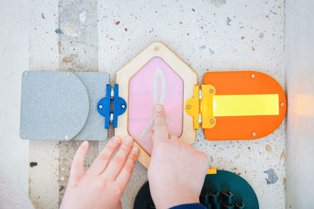 Les propriétés haptiques des divers textiles ont été exploitées pour en faire des capteurs. L’affordance de chaque textile conduit alors à induire un geste différent chez l’enfant (souffler, caresser, appuyer…). Associé à un système électronique, le textile devient un matériau souple réactif et permet alors au dispositif d’engager le corps pour faire comprendre aux tout petits les éléments d’un système de traitement de l’information composé d’une source d’énergie (une batterie), d’une information (un capteur textile) et d’un signal (une lumière qui s’active par le geste). Learning Matters est présenté comme un projet pour repenser la matérialité des outils numériques et éveiller les plus-petits à la culture numérique à travers le jeu et la manipulation d’interfaces tangibles.