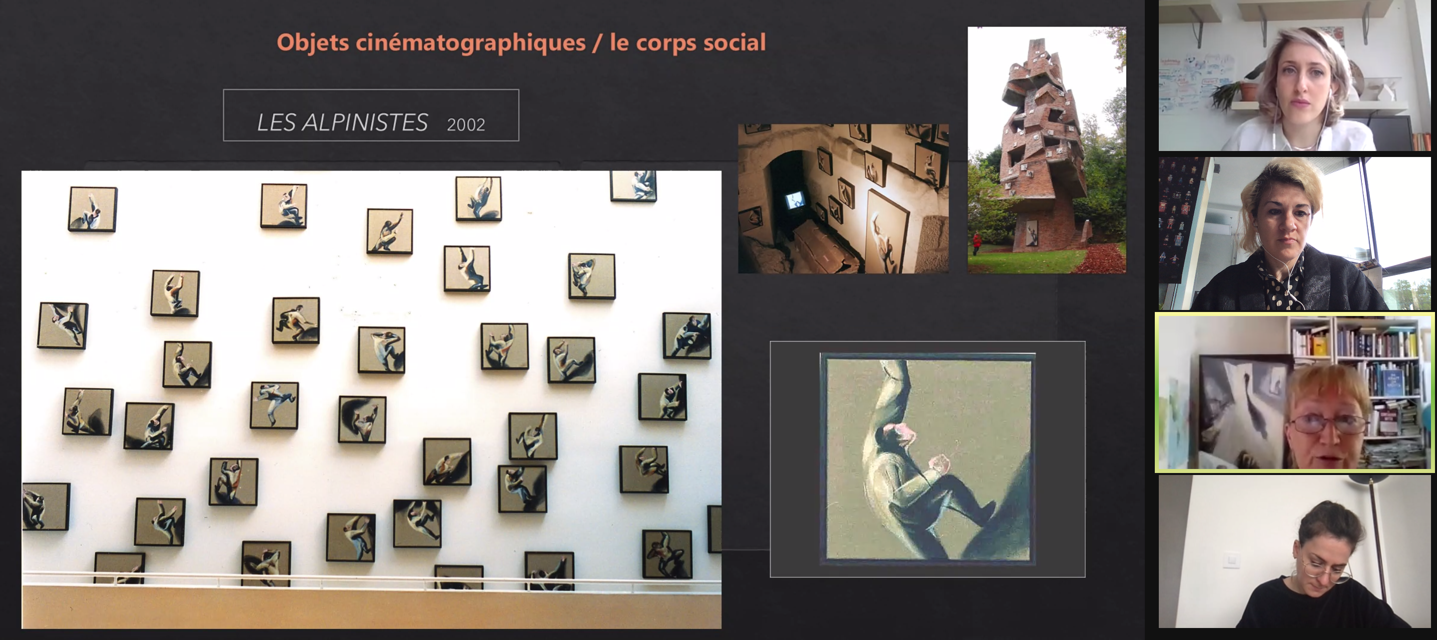 Les commentaires et échanges avec l’artiste ont fait aussi émerger la question de la prise de risque, de la mise en danger en investissant le corps qui peut donner lieu à des expériences spectaculaires certes mais surtout libératrices. Faire permet de se réapproprier une pensée et de lui donner corps, et le toucher est un moyen primordial par lequel se fait l’appropriation et la compréhension.