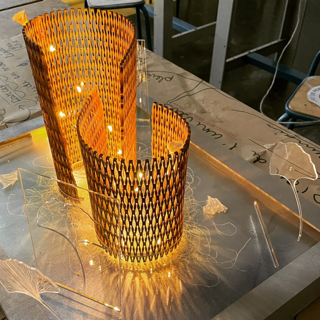 Ce projet n’est pas un simple exercice de maquettage. Par le faire, on emmène le concept dans une nouvelle direction. On crée une nouvelle forme de compréhension, et d’acceptation de ce qui advient dans le processus. Si le matériau ne réagit pas comme attendu, c’est un enseignement à prendre en compte. Il s’agit en somme de se placer soi-même en résonance, entre intention, intuition et réaction à l’inattendu. Cette mise en perspective est aussi au coeur de nos recherches en expérience design, avec l’activité du laboratoire commun Exalt (2017-21), et le séminaire Corps-prendre (2020-21). Encore une fois, la matérialisation s’affirme comme une source de connaissances sensibles.