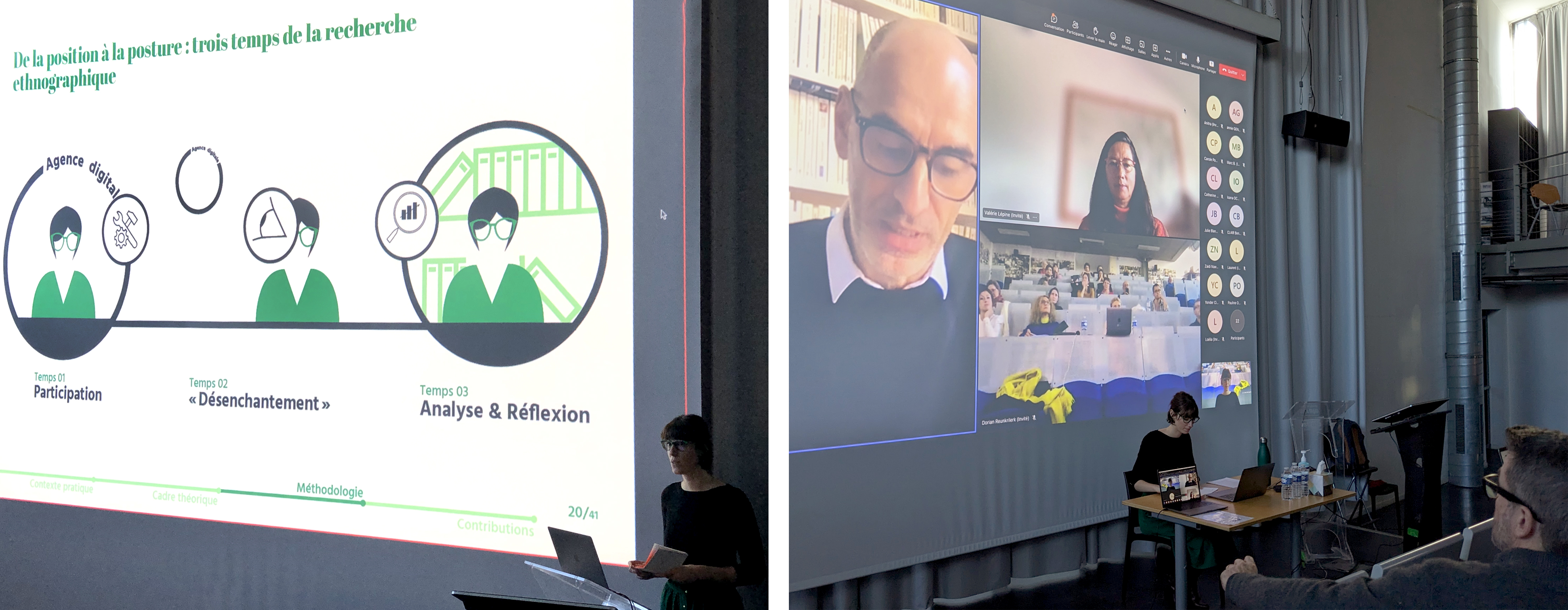 Basée sur une longue période d’observation participante, l’analyse de Justine s’est focalisée sur le temps vécu par ces différents acteurs. Elle a étudié ce qui émerge au cœur de ces situations “formatées”, et la façon dont l’expertise du design noue et dénoue les temporalités – en plein paradoxe entre injonction à l’accélération et espace de réécriture inventive.