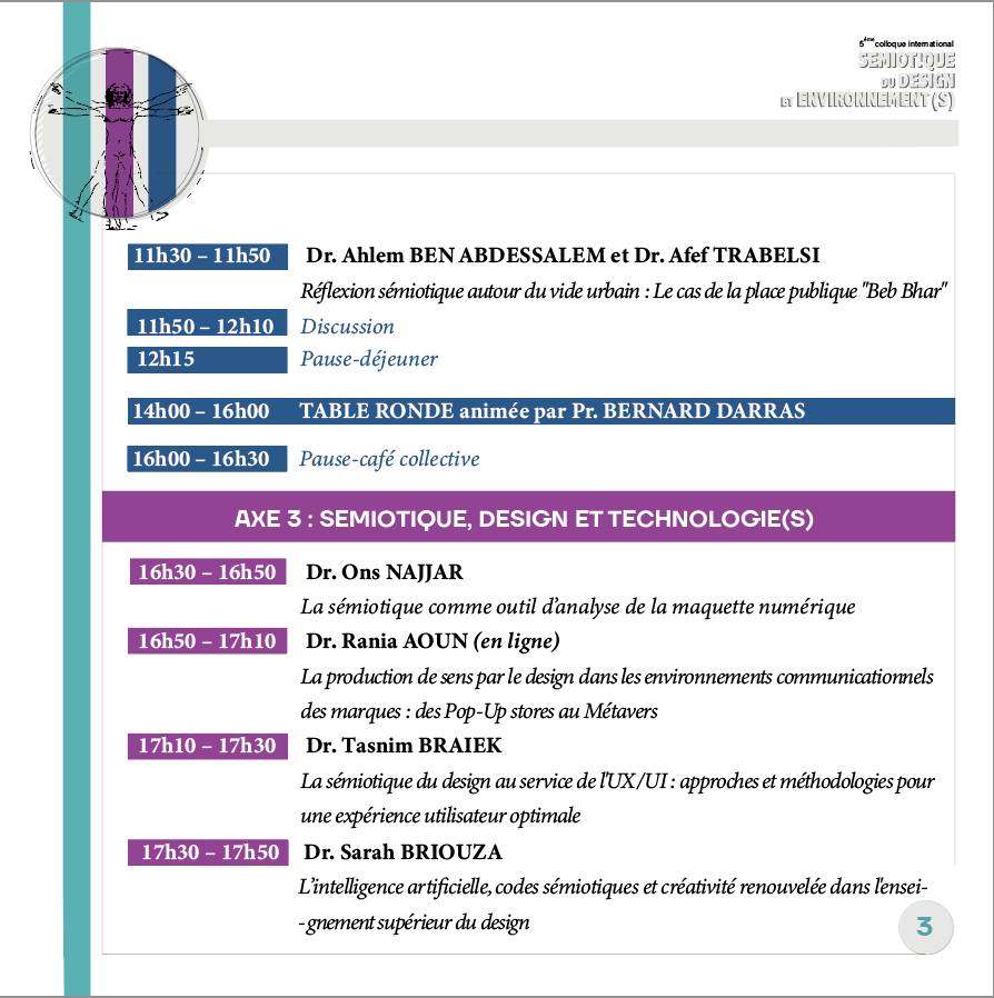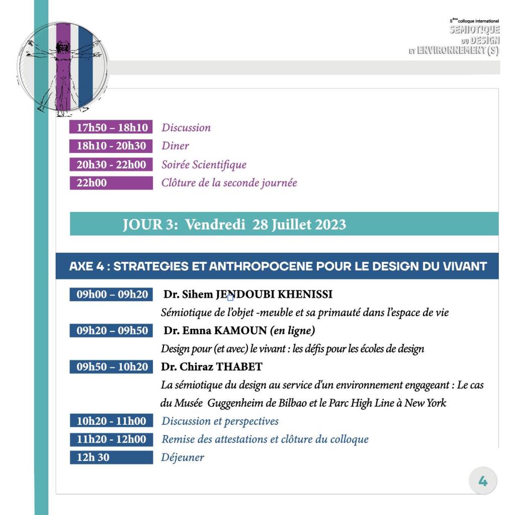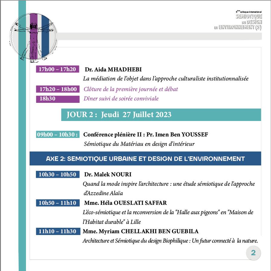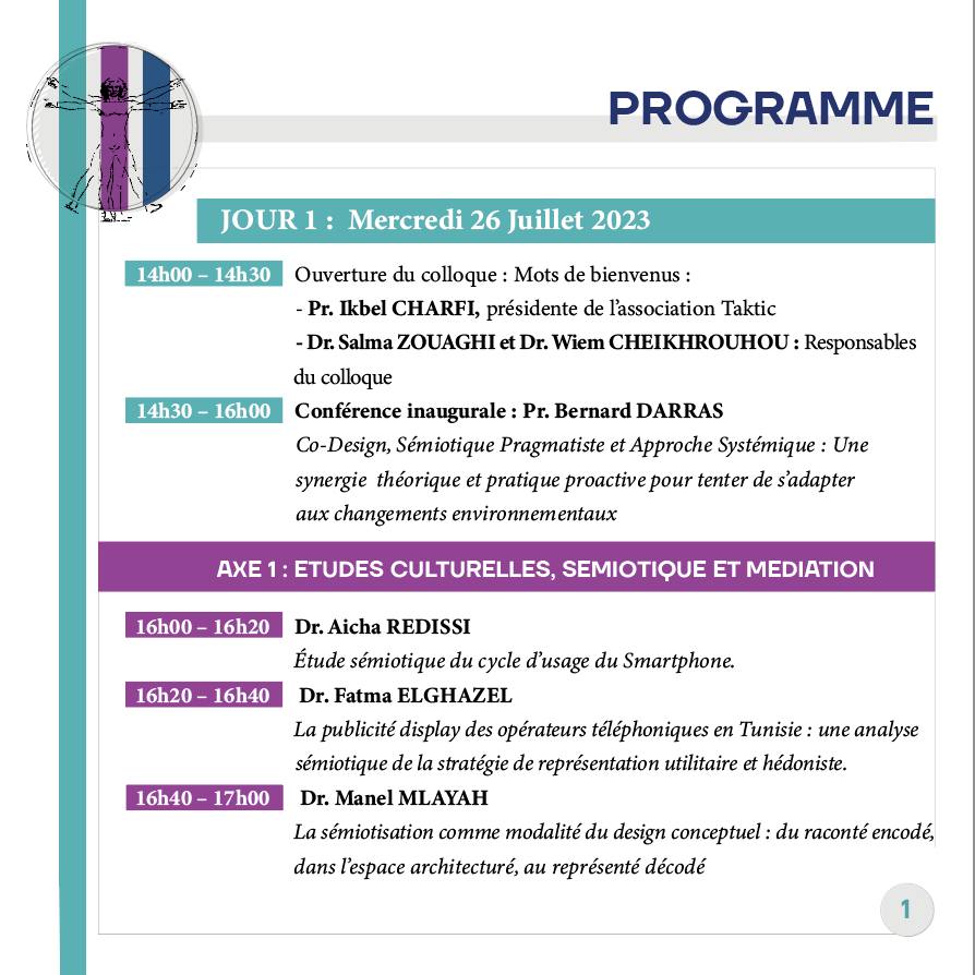 Juste avant les vacances, du 26 au 28 juillet, j’ai eu le plaisir de présenter un travail de recherche en cours lors que colloque Sémiotique du design et environnement(s), organisé par l’association TA’KTIC (Tunisian Association of Knowledge, Technology, Innovation and Creativity). Les organisatrices (que je remercie chaleureusement !) voulaient questionner les apports de la sémiotique du design à la réflexion sur les environnements au sens large, car au-delà du sens qui renvoie à l’écologie, ce colloque avait alors pour ambition de considérer le cadre de vie socio-temporel global de l’humain, incluant les aspects culturels et sociaux.