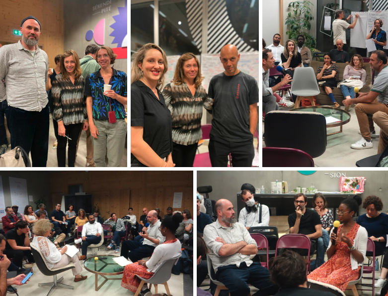 Finalement, on repart de cette soirée avec une bonne dose d’optimisme et d’envie d’agir. Les différentes conversations ont permis d’entrevoir des initiatives qui font figurer (et donc qui font exister dès aujourd’hui) un avenir plus juste entre humains mais aussi avec les autres vivants (j’ai entendu l’idée de penser à une « biodiversité administrative »). Dans cette mission, les designers ont un rôle important à jouer, mais à condition de s’appuyer sur le travail des collectifs en lutte, et loin de la posture de l’expertise, de mettre en avant les compétences de facilitation et de médiation pour accompagner les transitions.