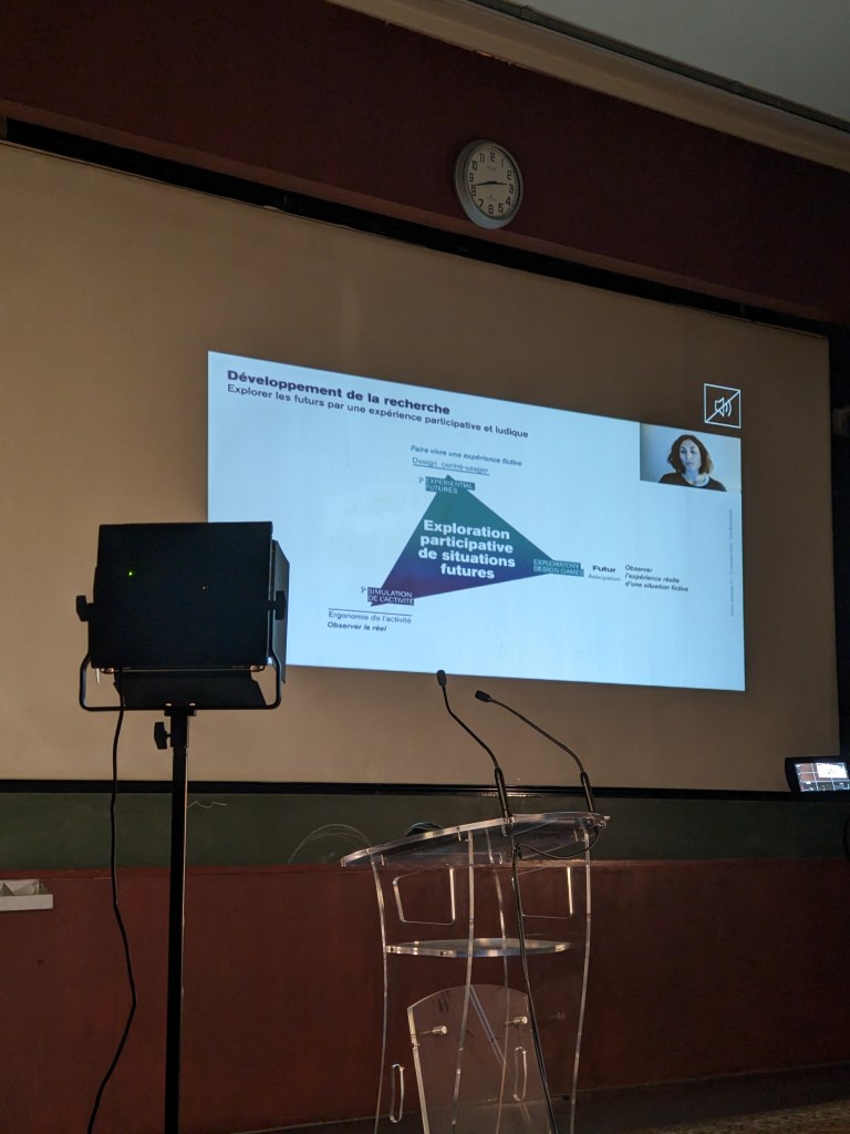 Sur le plan du contenu, l’événement a rassemblé neuf chercheur.euse.s, principalement des jeunes designers ou doctorant.e.s en sciences humaines et sociales, philosophie, sciences de gestion et sciences du design. Chacun.e a présenté ses recherches en lien avec une démarche de prospective, d’anticipation ou de projection en lien avec les pratiques contribuant à la construction des futurs et de la société.