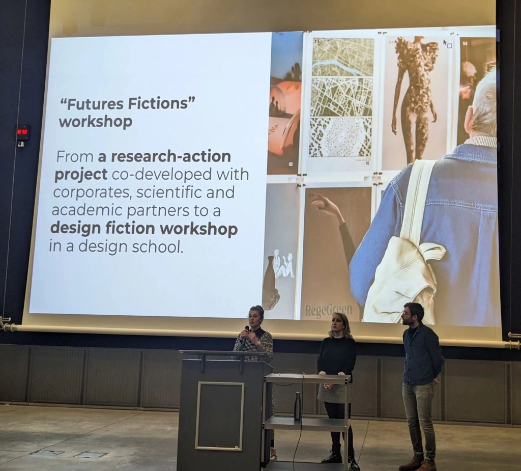 Avec pour titre “Des scénarios prospectifs au design fiction. Imaginer, projeter et mettre en débat des futurs compatibles avec les limites planétaires”, nous voulions rendre compte du lien entre un projet de recherche-action pour construire des scénarios compatibles avec les limites planétaires avec des acteurs économiques et un projet pédagogique sous forme d’atelier de design fiction pour incarner ces scénarios et les questionner.