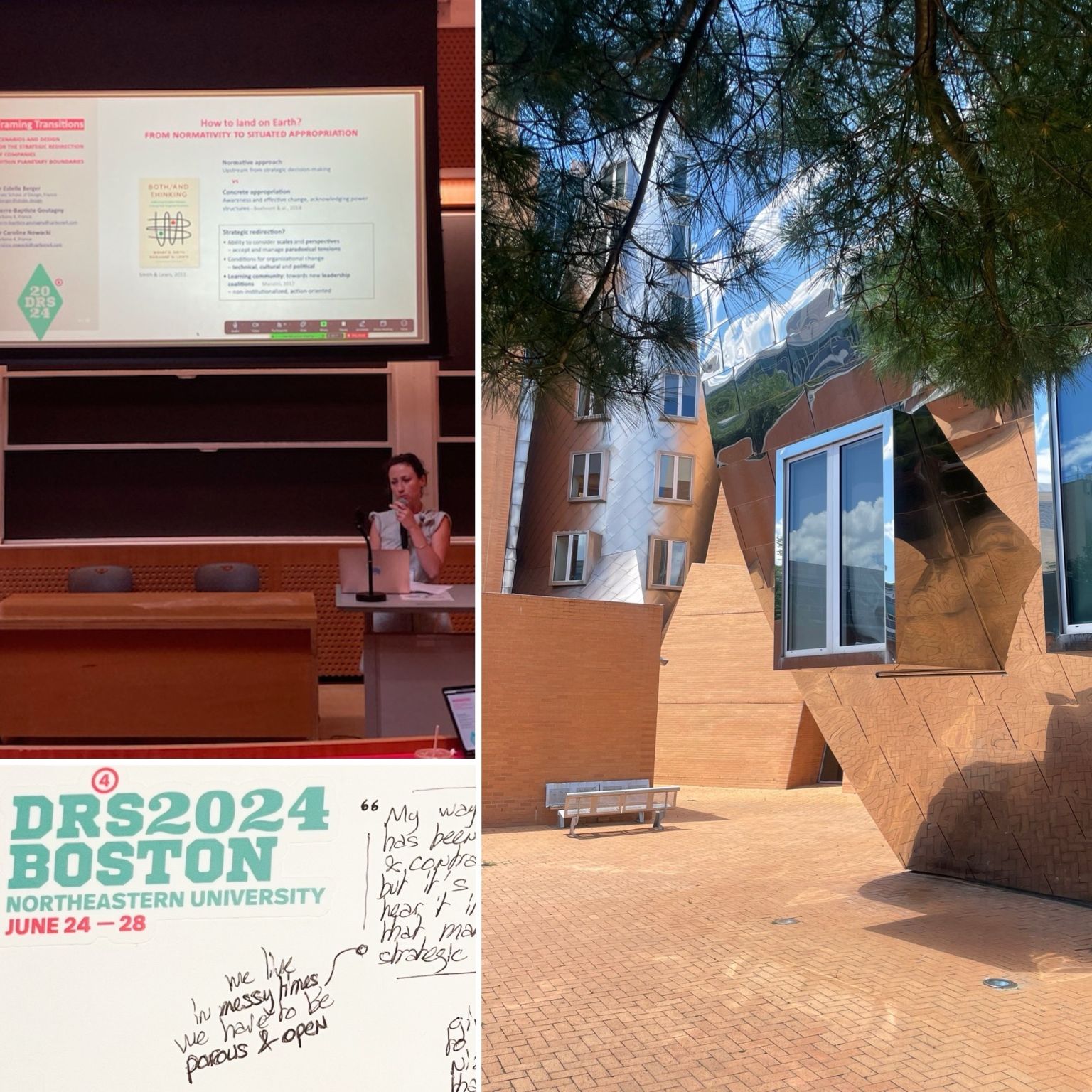 La conférence biennale de la Design Research Society s’est tenue du 24 au 28 juin 2024, accueillie à Boston par un trio d’universités prestigieuses : Northeastern University, Harvard et le MIT. Outre la chance de découvrir ces campus fantastiques, nous avons profité d’une édition de DRS plus foisonnante que jamais. 28 sessions thématiques étaient au programme, articulant communications, workshops et discussions ! Les keynotes n’ont pas été reconnus comme les plus avant-gardistes, contrastant même parfois frontalement avec le contenu des conversations entre pairs : d’une part la perspective de grandes firmes qui considèrent la recherche en design dans un contexte de R&D ; d’autre part beaucoup d’interrogations sur le changement sociétal, et l’équilibre entre engagement et effacement que nos professions doivent accomplir.